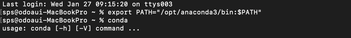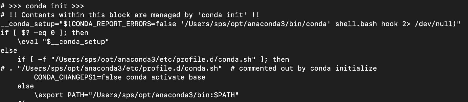 여기서 export PATH="/Users/sps/opt/anaconda3/bin:$PATH" 부분을 복사해준다