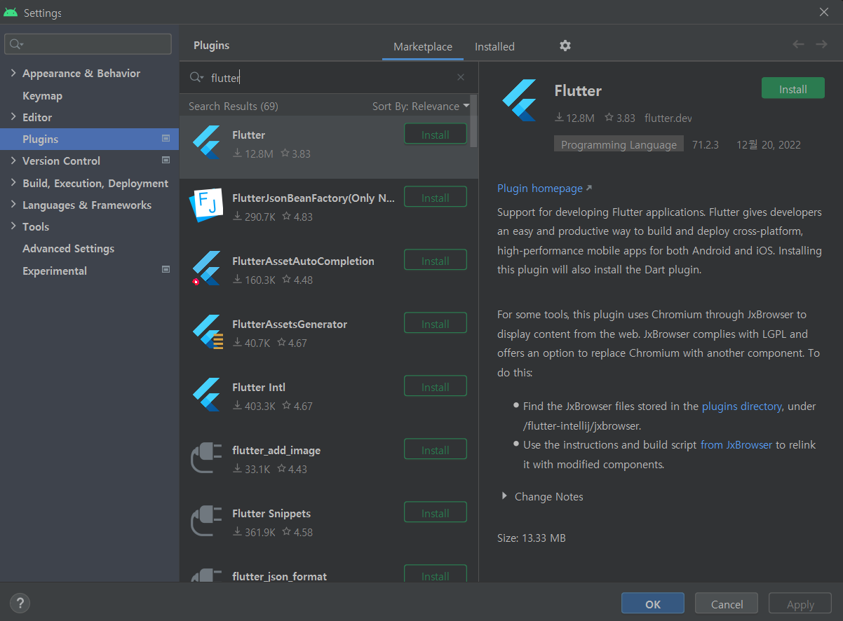 안드로이드 스튜디오에서 Flutter 환경설정 하기