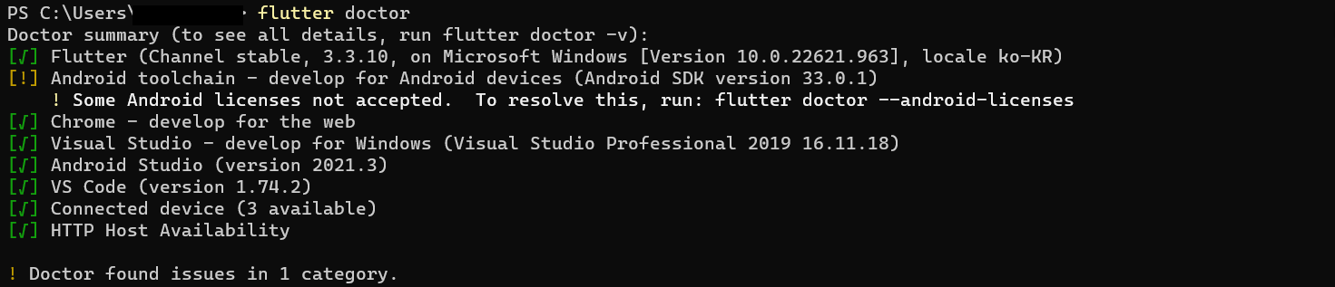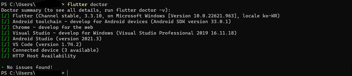 Flutter 환경변수 설정이 잘 되었는지 확인