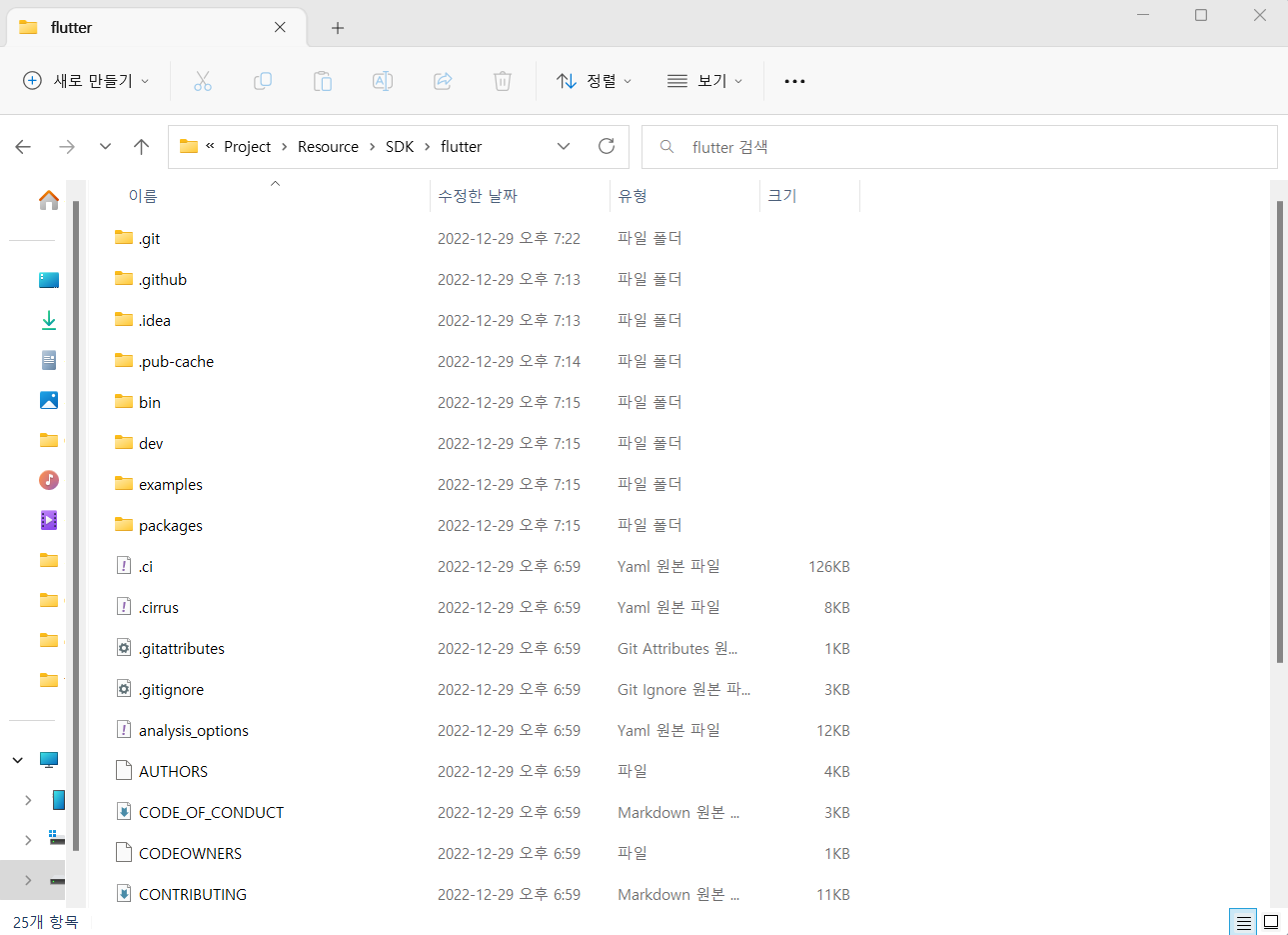 Flutter SDK 를 다운로드 받은 뒤 적절한 폴더에 압출을 풀어준다.