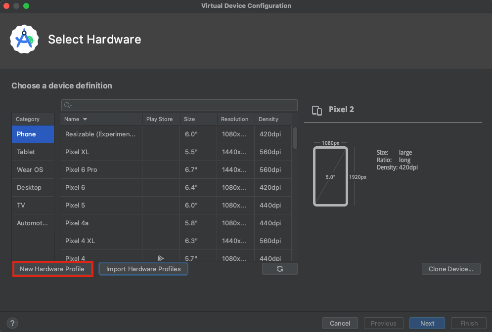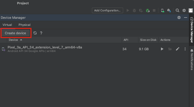 4. 안드로이드 스튜디오 실행 - Device Manager - Create Device