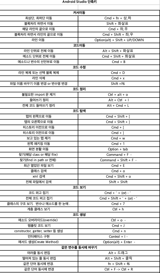 Android Studio 단축키 본문